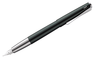 Перьевая ручка из топовой серии Lamy - hi-quality writing. Корпус и колпачок покрыты черным матовым лаком, перо и грип-секция из полированной стали. Оригинальный клип выполнен в виде лопасти и повернут под углом 90 градусов к корпусу. Перо F. В комплекте - синий картридж Lamy T10.